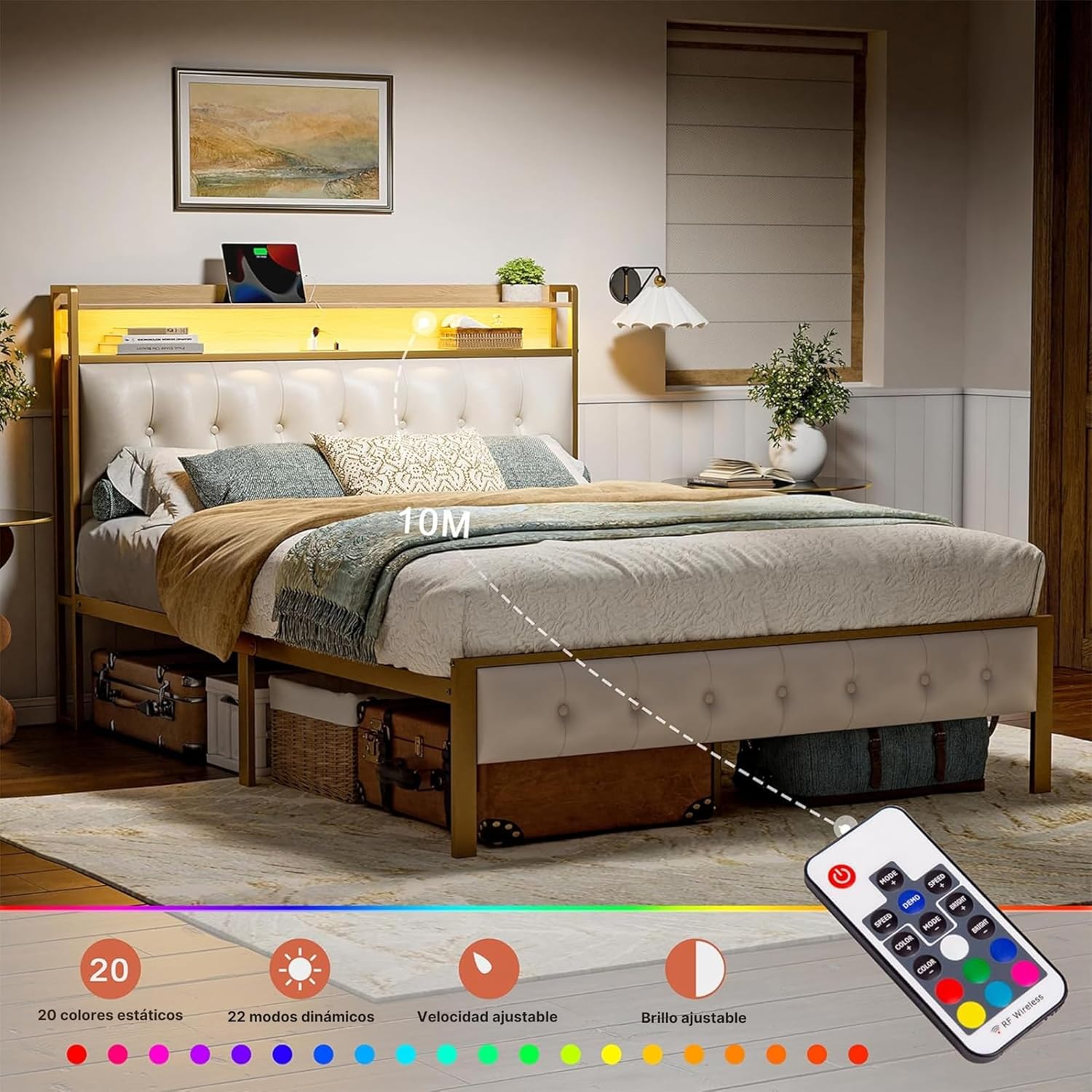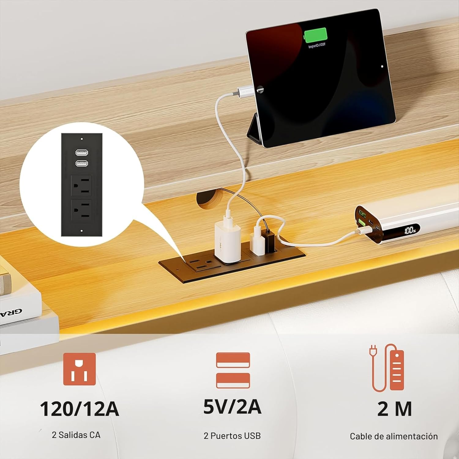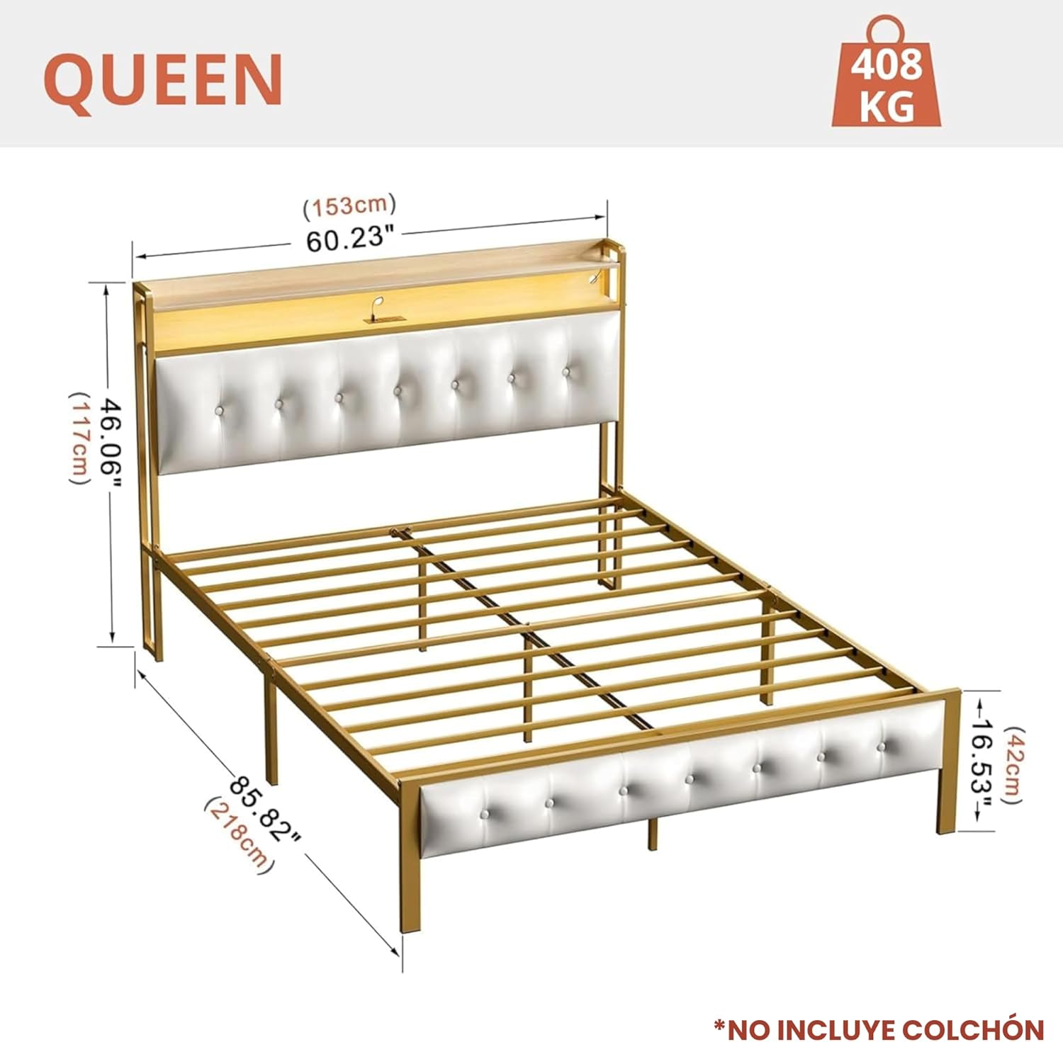 | Característica especial | Puerto USB, Luces LED, Salidas de CA., No incluye colchón |