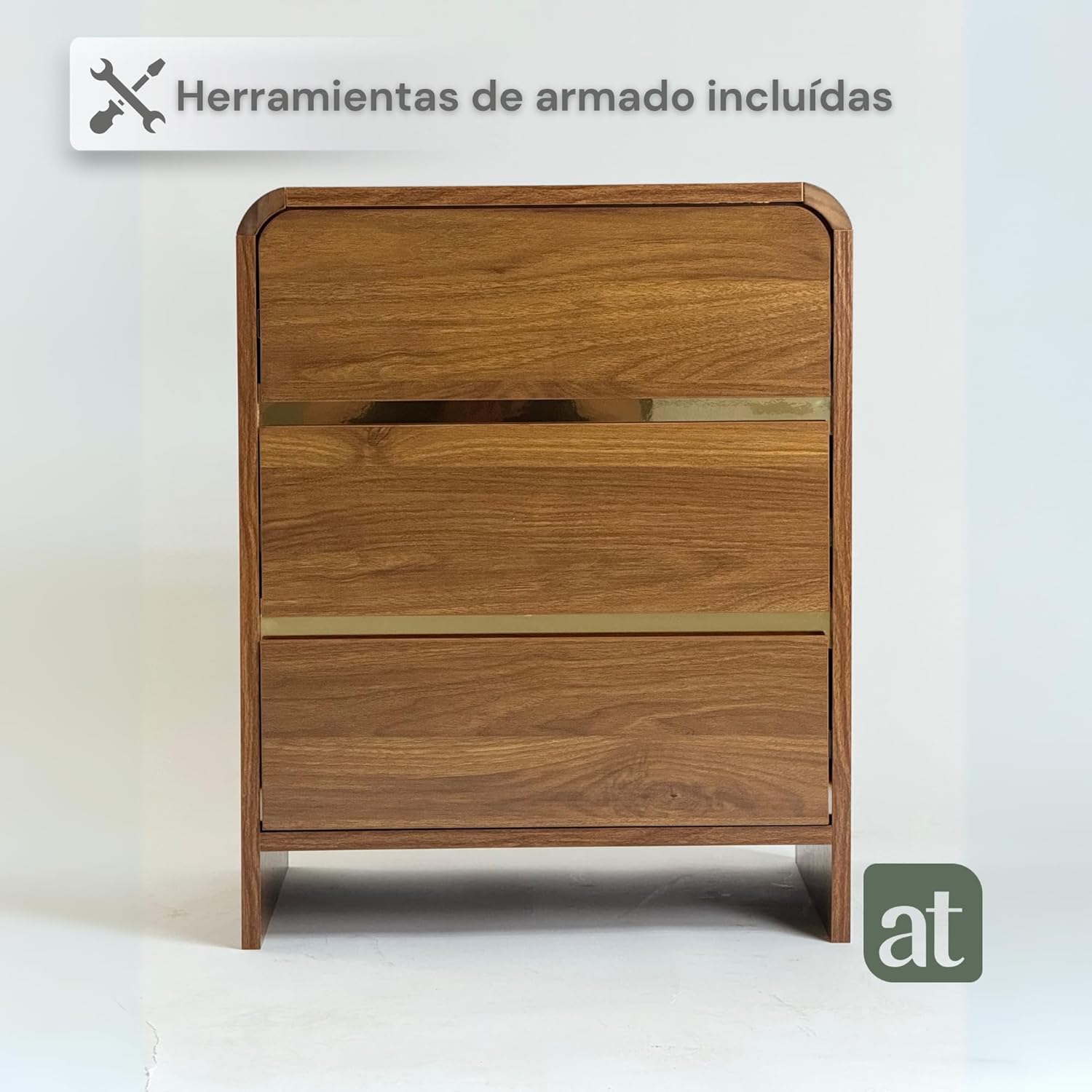 • Exquisito estilo moderno minimalista: En comparación on otros buros para recamara minimalista, el buró de madera para recámara encarna la elegancia y funcionalidad de alto nivel; su diseño en color nogal con herrajes dorados brinda un toque sofisticado y contemporáneo, transformando cualquier espacio en un rincón de estilo y confort, perfecto para elevando la atmósfera de tu recámara o sala.