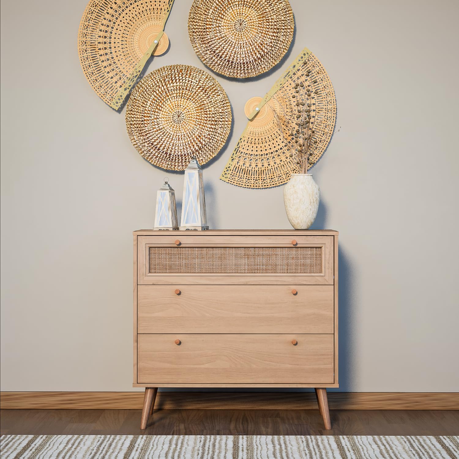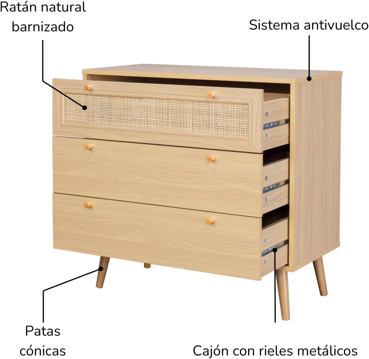 • Diseño moderno: Esta moderna cajonera organizador con ratán le dará personalidad, calidez y carácter a cualquier espacio de tu hogar. Es un estilo en tendencia muy popular.