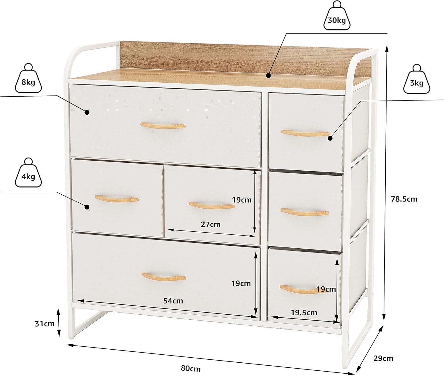 | Dimensiones del producto | 29prof. x 80an. x 78,5alt. centimeters |