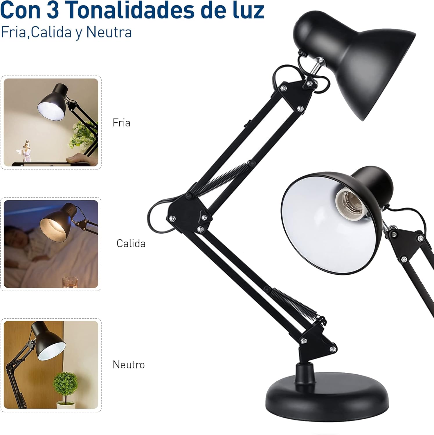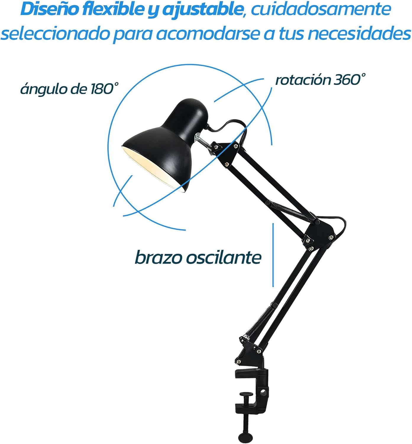 Lámpara de Escritorio con Brazo Oscilante de Metal