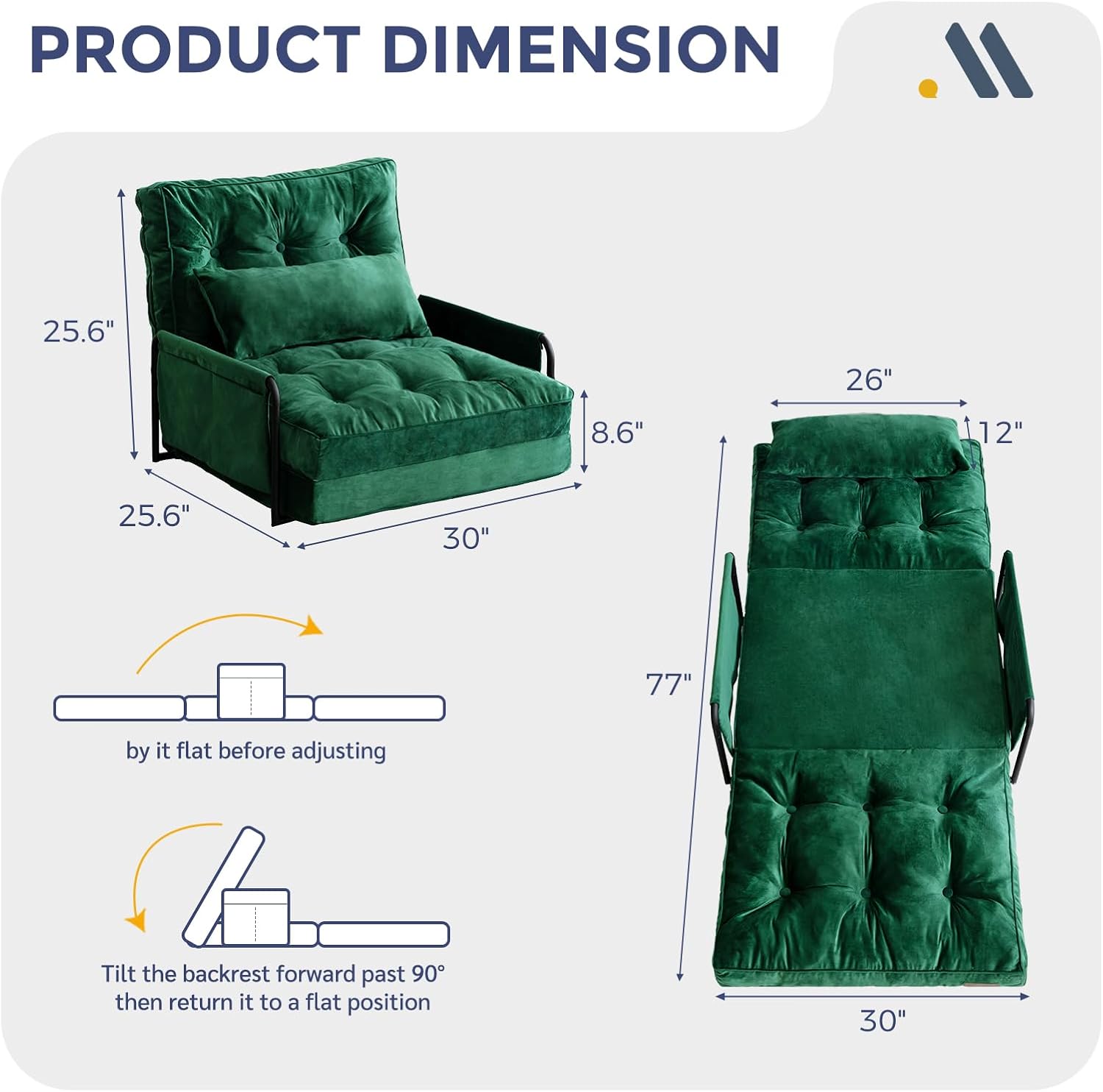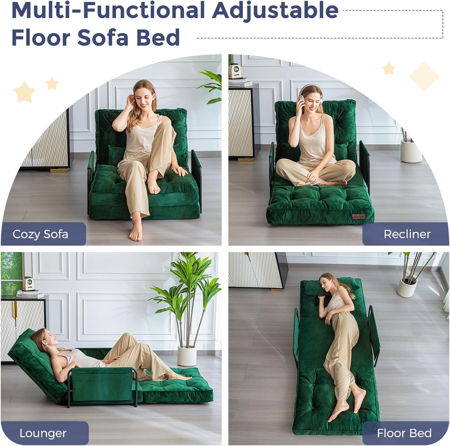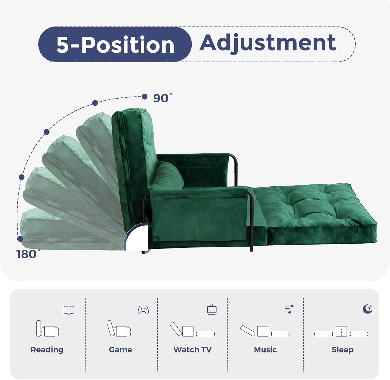 • Ajuste de 5 posiciones: adapta tu comodidad a cinco ajustes ajustables distintos, lo que te permite sentarte en posición vertical, reclinarte tranquilamente o acostarte completamente para una relajación sin igual. Con una transición sin costuras de sofá a cama a través de un ajuste directo, proporciona opciones versátiles tanto para sentarse como para dormir