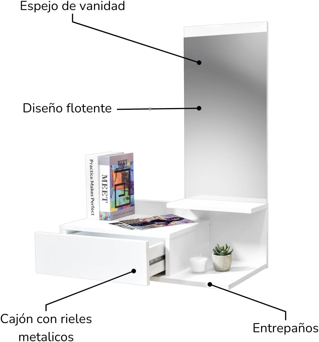 | Material | Madera de ingeniería, Espejo, Madera |